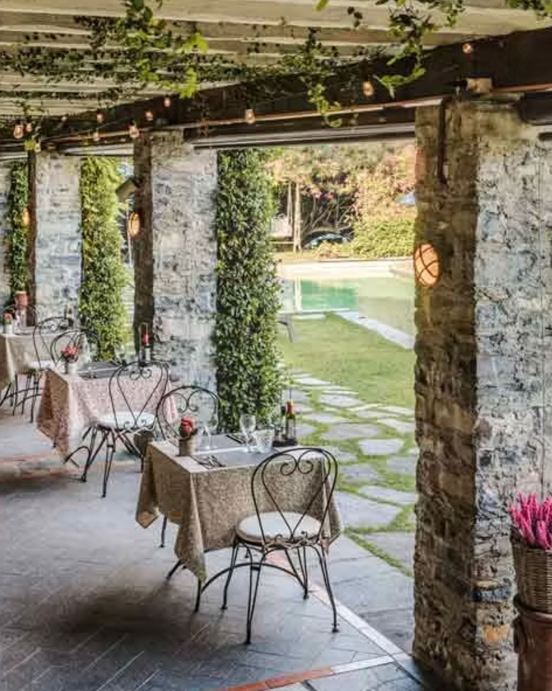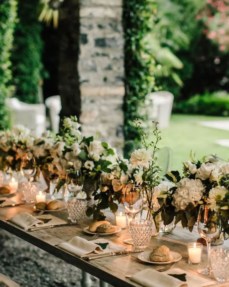 Dine in style beside the villa’s serene swimming pool, beneath a romantic pergola that glows as the sun sets over the lake. The open-air dining setup is perfect for a refined yet relaxed celebration with up to 70 guests, creating an exclusive and intimate ambiance that’s hard to beat.